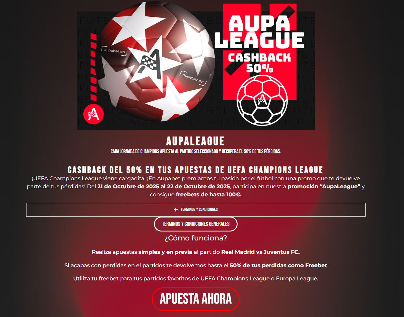 Actividad mínima acumulada: Volumen de actividad registrada en apuestas superior a 500 € en el periodo comprendido entre la fecha posterior al” AUPALEAGUE” anterior, (02/10/2025) hasta el 20/10/2025, (inclusive).